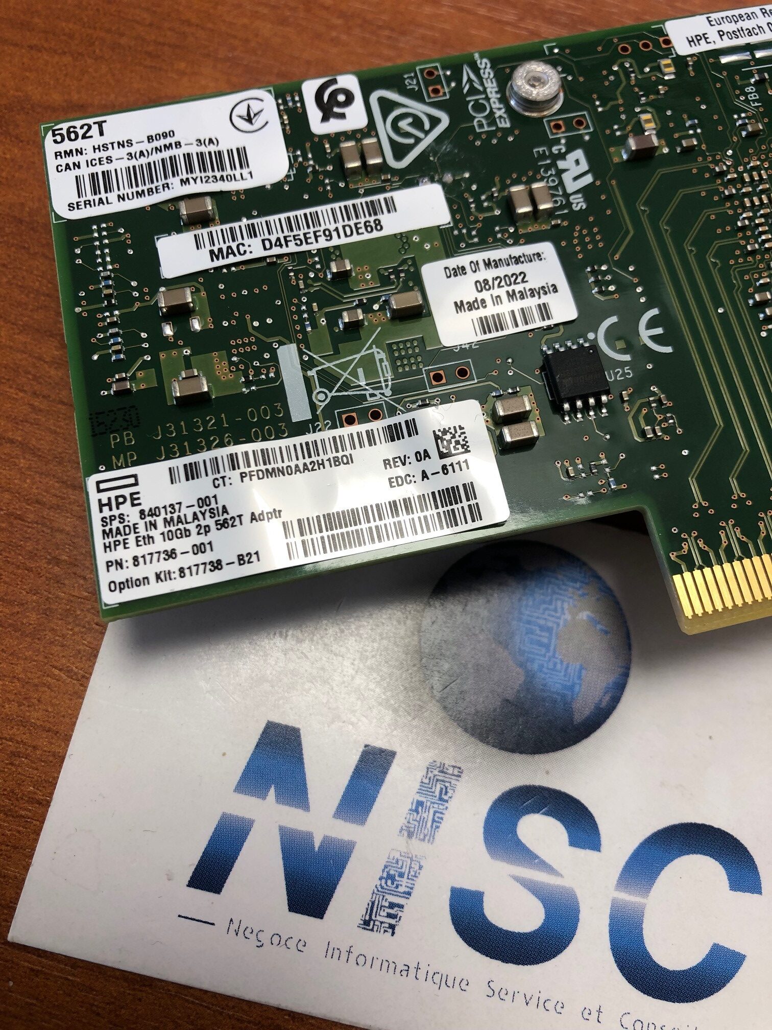 Hpe – 2x 10Gbps base-T PCIe 562T X550AT2 – HP/N : 817738-B21 / 817736-001