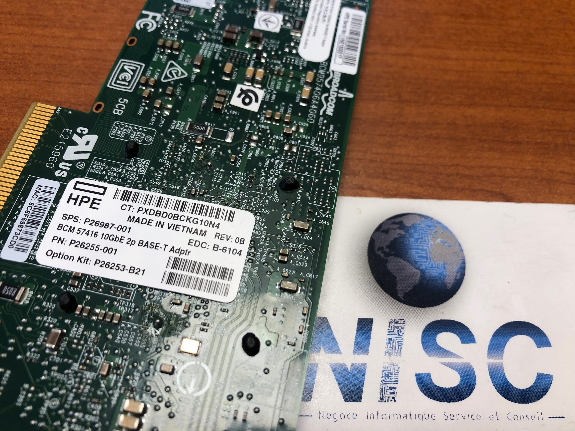 Hpe – P26255-001 – BCM57416 2x 10Gbps base-T PCIe – Option kit : P26523-B21 – Equerre 1/2 hauteur